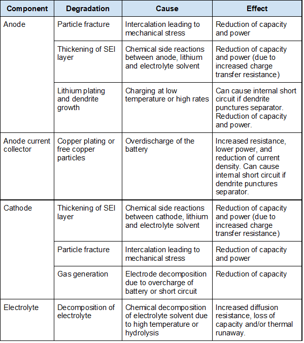 To understand degradation mechanisms, we can segment them by component as shown in the table below (source: adapted from Hendricks et al.)