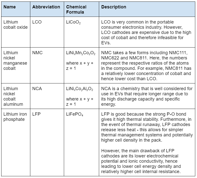Introduction to common cathode materials