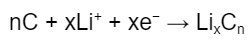 When LixCn is formed, the graphite is said to be “lithiated” via a mechanism known as intercalation. During intercalation, lithium ions insert themselves into the graphite matrix (Figure 2) until maximum capacity is reached. In general, six carbon atoms can accommodate one lithium atom.