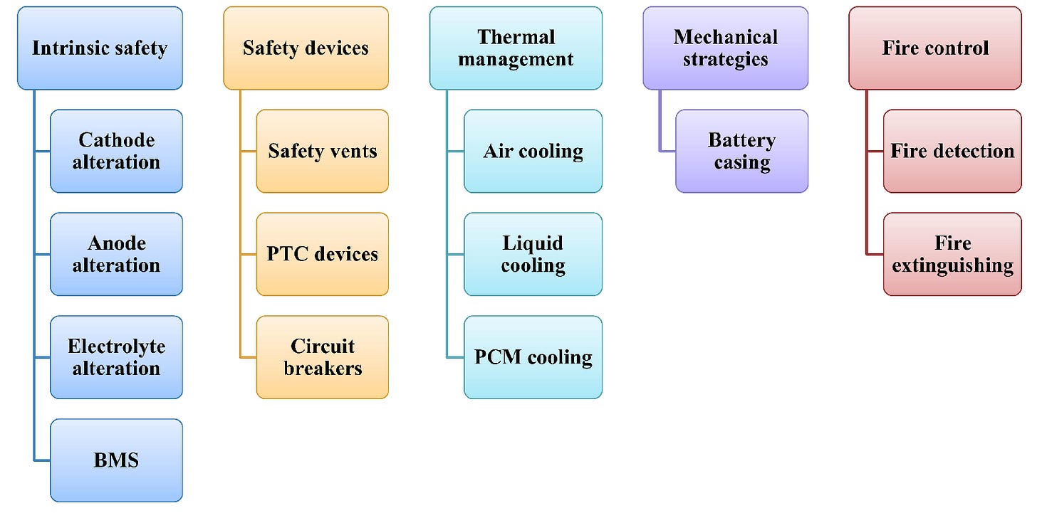 Overall, methods to mitigate failure of Li-ion cells can be classified into five categories, as Figure 24 shows.