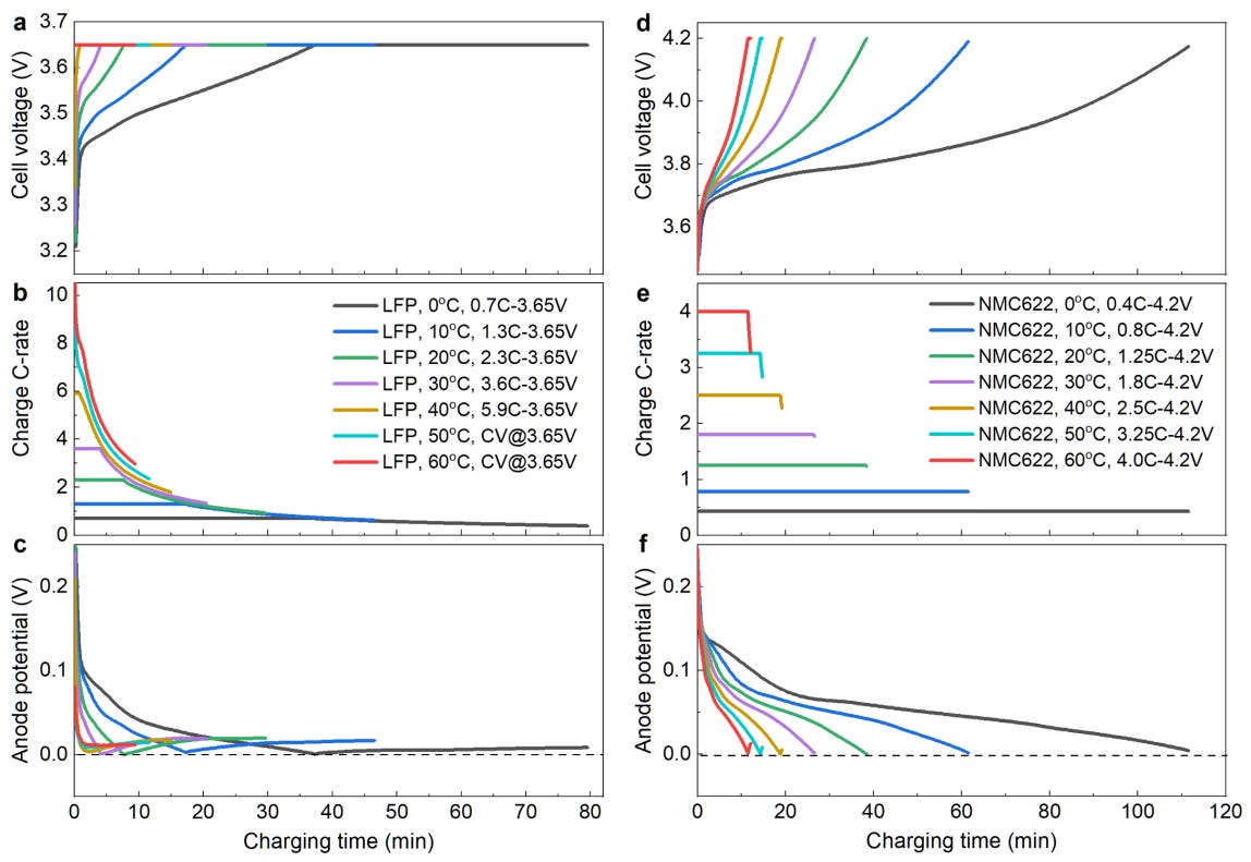 As Figure 3 illustrates, the maximum charge rate to avoid lithium plating drops with decreasing temperature. At the same time, charging time increases with decreasing temperature.