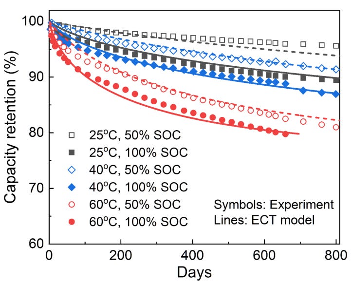 Lastly, thermal stress - from both external and internal heat sources - can increase the temperature of the Li-ion cell, and reduce the net rate at which a Li-ion cell can dissipate heat away. Overall, the temperature of the Li-ion cell increases.